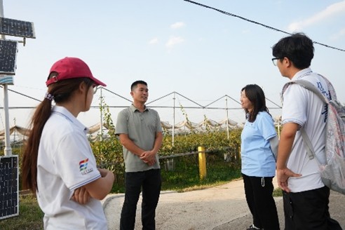 實(shí)踐團(tuán)懷著興奮與好奇的心情走進(jìn)了獼猴桃種植園。在這里,他們親眼觀察到了獼猴桃的植株形態(tài),那毛茸茸的果實(shí)掛在藤蔓上,十分可愛。駐村書記史書記詳細(xì)地為大家介紹了獼猴桃的種植歷史,讓實(shí)踐團(tuán)們了解到這種水果的源遠(yuǎn)流長。同時(shí),還講解了獼猴桃的生長環(huán)境、品種特點(diǎn),以及種植方法和養(yǎng)護(hù)技巧,包括施肥、澆水、修剪等各個(gè)環(huán)節(jié)。