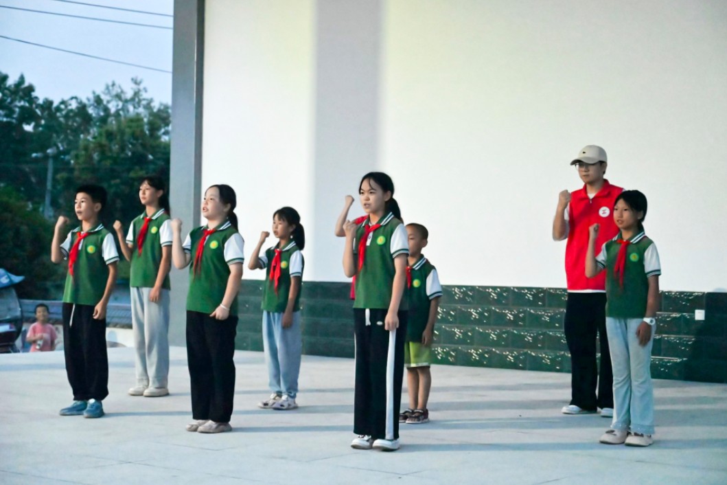 實(shí)踐團(tuán)精心設(shè)計(jì)了《講好中國(guó)話》節(jié)目,孩子們?cè)趨R演時(shí)自信演繹集體朗誦與繞口令,從羞澀到昂揚(yáng)的蛻變贏得滿堂掌聲,清亮童聲傳遍鄉(xiāng)野:“一字一句中國(guó)話,千言萬(wàn)語(yǔ)傳天下……”