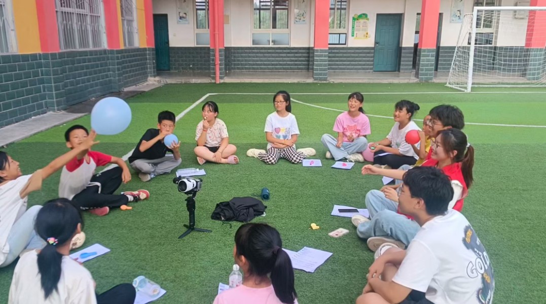 圖為實(shí)踐團(tuán)成員帶孩子們做游戲。王一坤 供圖