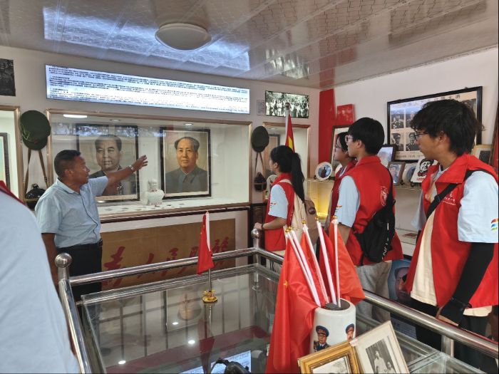 篇章四:紅館聆聽初心語 薪火相傳使命擔(dān)“一間紅館藏歲月,滿腔赤誠映初心。”7月11日下午,實(shí)踐團(tuán)走進(jìn)當(dāng)?shù)氐奈渖酱寮t色展覽館,雖場館不大,卻陳列著承載革命記憶的老照片、舊物件,靜靜訴說著這片土地的紅色故事。武時(shí)備館長用沙啞卻充滿力量的聲音,逐件講解展品背后的英雄事跡——從抗戰(zhàn)時(shí)期的支前故事到新時(shí)代的鄉(xiāng)村變遷,從革命先輩的奮斗歷程到當(dāng)代黨員的堅(jiān)守奉獻(xiàn)。