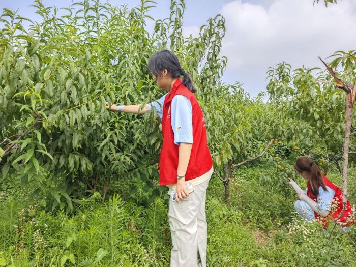 篇章三:果園踏查摸實(shí)情 深耕細(xì)作探路徑“枝頭碩果凝汗水,田間調(diào)研察實(shí)情。”7月11日上午,實(shí)踐團(tuán)專程深入西山花海景區(qū)周邊果園,踏著晨露開展實(shí)地考察。成員們穿梭于果樹間,仔細(xì)觀察桃樹的生長狀態(tài),詳細(xì)詢問果農(nóng)種植品種、年產(chǎn)量、灌溉方式等基礎(chǔ)信息,重點(diǎn)記錄不同水果的成熟周期與當(dāng)前銷售渠道。