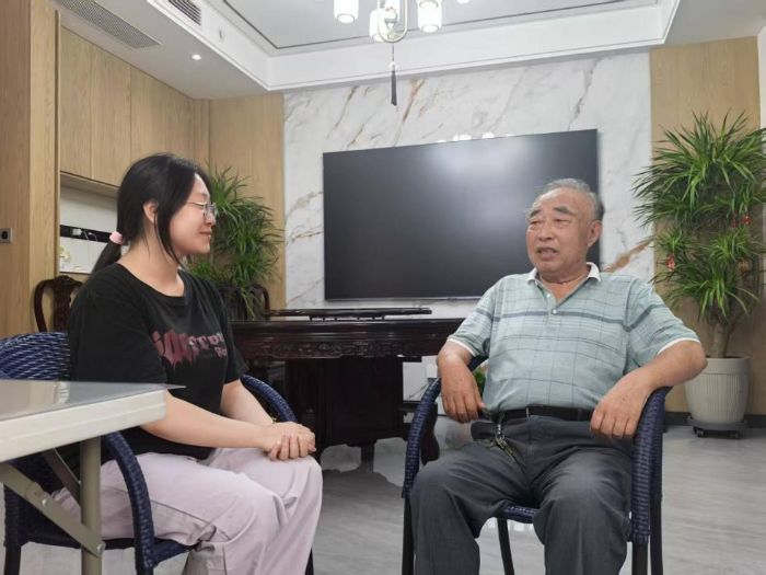 隨后,實(shí)踐團(tuán)成員懷著崇敬的心情踏入黃橋戰(zhàn)役紀(jì)念館。館內(nèi)莊嚴(yán)肅穆,泛黃的史料圖片無(wú)聲訴說(shuō)著往昔的烽火歲月,銹跡斑斑的槍炮、布滿補(bǔ)丁的軍裝等珍貴實(shí)物,仿佛將眾人帶回那段波瀾壯闊的歷史現(xiàn)場(chǎng)。成員們放慢腳步,仔細(xì)端詳每一件展品,在講解員的細(xì)致解說(shuō)下,深入了解黃橋戰(zhàn)役的戰(zhàn)略意義與戰(zhàn)斗歷程。令人振奮的是,實(shí)踐團(tuán)有幸邀請(qǐng)到抗戰(zhàn)老兵劉爺爺來(lái)到現(xiàn)場(chǎng),分享著他的抗戰(zhàn)經(jīng)驗(yàn),“那時(shí)候條件艱苦啊,戰(zhàn)士們餓著肚子和敵人拼,靠著堅(jiān)定的信念和靈活的戰(zhàn)術(shù),才打贏了這場(chǎng)關(guān)鍵戰(zhàn)役。”說(shuō)到動(dòng)情處,老人眼中泛起淚光,成員們也不禁為之動(dòng)容。每一件文物都是歷史的見(jiàn)證者,銘記歷史才能走好新時(shí)代的長(zhǎng)征路。在新時(shí)代的講述中,革命精神煥發(fā)出新的光芒,激勵(lì)著每一位青年學(xué)子砥礪前行。