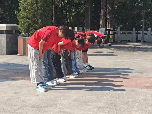 圖為隊員們在革命英雄紀念碑前鞠躬