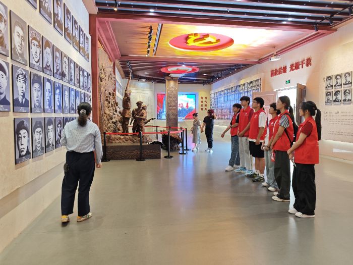 懷著無比崇敬的心情,隊員們步入金寨縣紅軍紀念堂。這里排列了詳實的史料和烈士畫像,在講解員的深情講述下,那段波瀾壯闊、艱苦卓絕的革命歲月鮮活地呈現(xiàn)在隊員們的眼前。隊員們被革命先輩“堅守信念、胸懷全局、團結(jié)一心、勇當前鋒” 的大別山精神深深震撼,認真聆聽講解,不時駐足凝視,在歷史的回望中汲取信仰的力量,筑牢理想的根基。