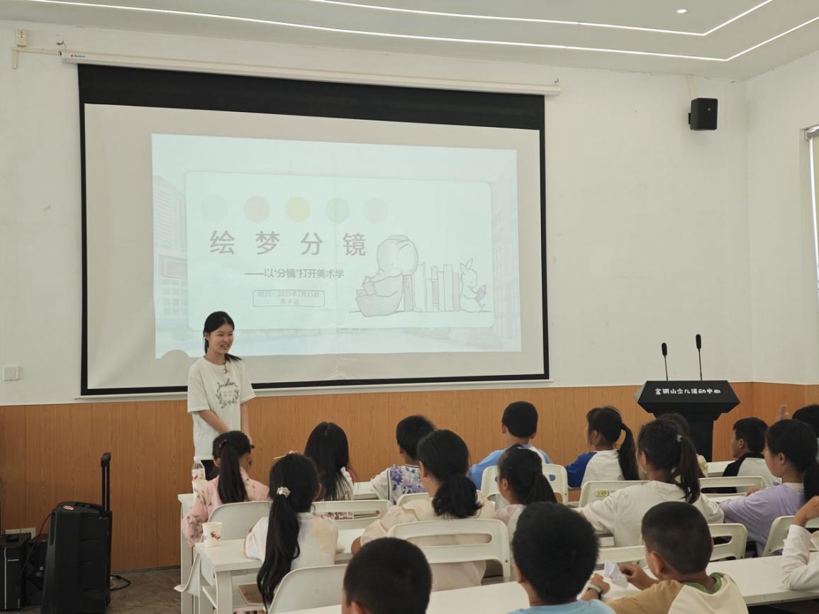 美術課程部分,授課隊員向同學們引入分鏡繪畫的新概念,以貼近小朋友日常生活的動畫片為切入點,講解分鏡格子與故事情節(jié)的聯(lián)系。在隊員的指導下,一個個小小的身影俯身趴在桌子上,拿著畫筆在白紙上小心翼翼地勾勒,眼中美好盡投射筆尖,心中激蕩皆繪入紙簾。
