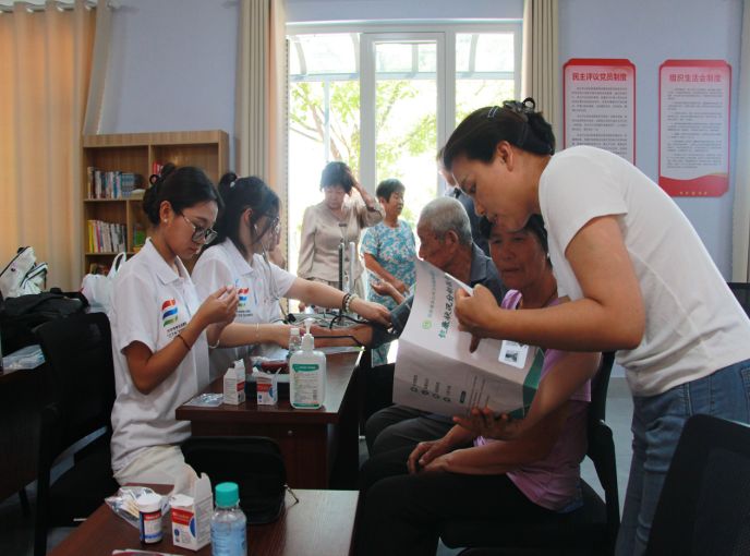 志愿服務(wù)隊(duì)聯(lián)合山東第二醫(yī)科大學(xué)附屬醫(yī)院、東營市人民醫(yī)院的多領(lǐng)域?qū)<,深入基層一線開展義診服務(wù),并針對常見疾病耐心問診,給出科學(xué)診療建議。服務(wù)隊(duì)充分發(fā)揮專業(yè)優(yōu)勢,為居民提供量血壓、測血糖等基礎(chǔ)醫(yī)療服務(wù),對指標(biāo)異常村民給予健康指導(dǎo),叮囑定期監(jiān)測、及時(shí)就醫(yī)。此次義診活動(dòng),不僅讓村民在家門口就享受到了便捷、專業(yè)的醫(yī)療服務(wù),也進(jìn)一步提升了護(hù)理學(xué)院學(xué)子的社會(huì)實(shí)踐能力和團(tuán)隊(duì)協(xié)作精神,展現(xiàn)了青年學(xué)生的責(zé)任與擔(dān)當(dāng)。