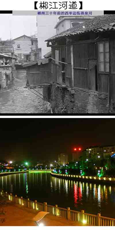 (改革前后的郴江河道對比)