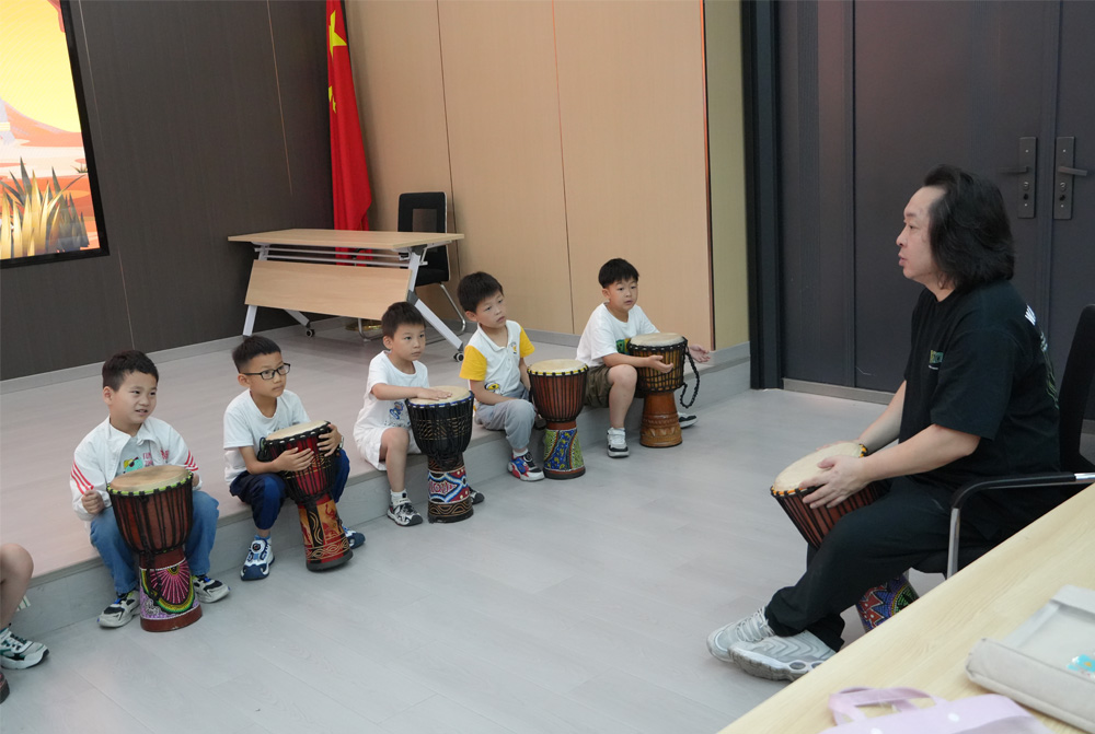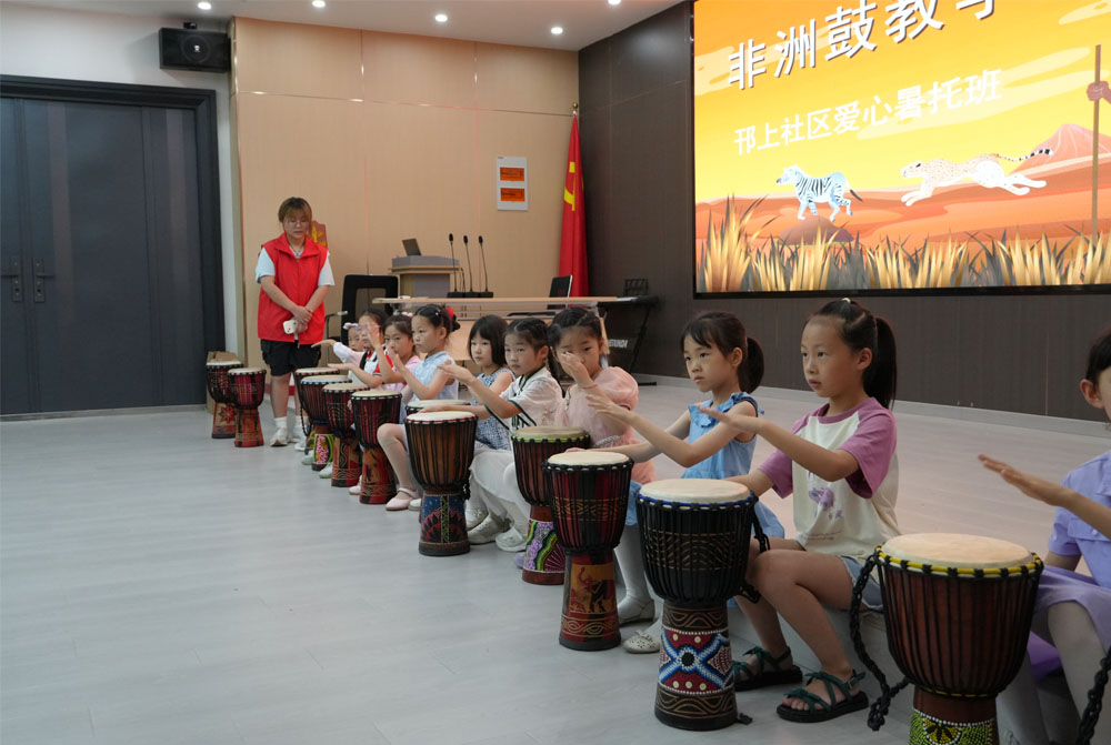炎炎夏日,蟬鳴不止,隨著暑假的開始,為了豐富孩子們暑期生活,南京師范大學(xué)泰州學(xué)院紅心研墨團(tuán)隊(duì)走進(jìn)揚(yáng)州邗江社區(qū)將精彩的非洲鼓教育課程呈現(xiàn)給每一個(gè)孩子們。第三期課程為非洲鼓課程,非洲鼓又稱非洲手鼓,起源于非洲大陸,是非洲音樂文化中不可或缺的樂器之一。它歷史悠久可以追溯到公元前500年左右。非洲鼓不僅是一種樂器,更是非洲人民生活的一部分,承載著非洲大陸豐富的文化內(nèi)涵和歷史傳承。學(xué)習(xí)它是音樂藝術(shù)熏陶的重要方式。