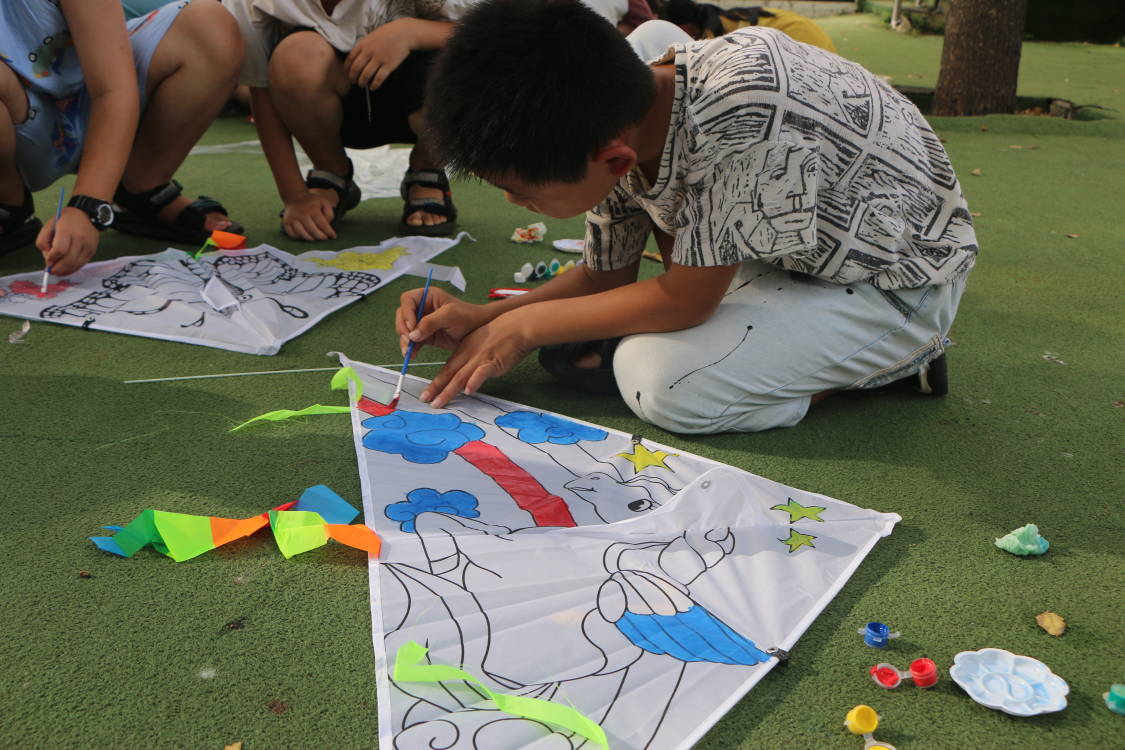 有的孩子細心地為風箏涂上了五彩斑斕的彩虹,每一道色彩都像是他們心中對美好生活的向往與期待;有的孩子則選擇了卡通人物作為主題,用稚嫩卻充滿靈氣的筆觸,為風箏賦予了生動的故事與情感,展現(xiàn)了他們純真無邪的內(nèi)心世界。整個活動現(xiàn)場瞬間變成了一個色彩斑斕的童話世界,每一聲歡笑、每一筆色彩,都是孩子們對未來生活的美好憧憬。