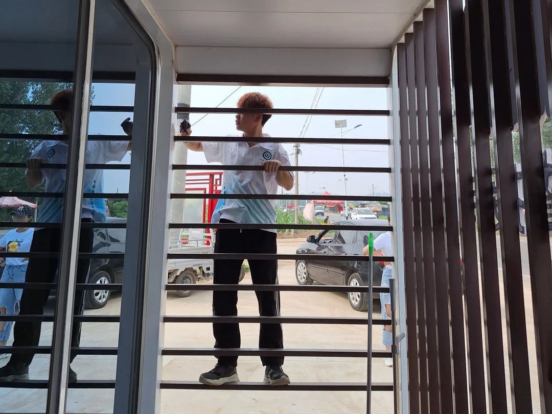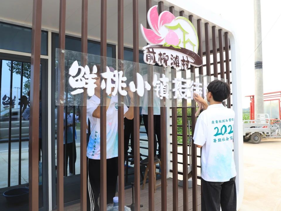 實(shí)踐團(tuán)成員首先來(lái)到鮮桃小鎮(zhèn)接待中心開(kāi)展志愿服務(wù)活動(dòng),大家充分發(fā)揚(yáng)“不怕臟、不怕苦、不怕累”的精神,手持掃帚、簸箕、拖把、抹布等工具,將接待中心內(nèi)外所有窗戶、欄桿、地面及衛(wèi)生死角進(jìn)行了全面的清理,擦亮村莊底色,提升環(huán)境顏值,共建共享和美鄉(xiāng)村。