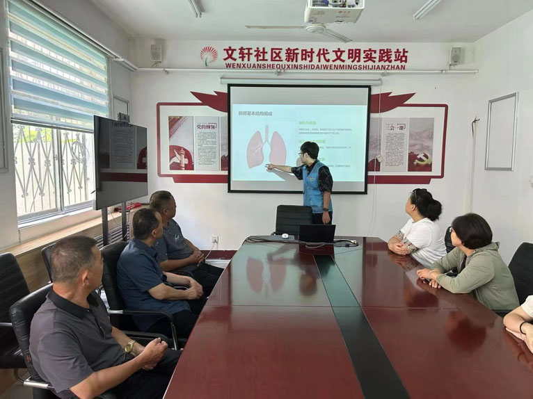 活動過程中,團隊成員通過制作的PPT,使社區(qū)居民近距離、直觀地了解肺部的呼吸運動過程,肝臟進行解毒與代謝工作,以及大腦向身體發(fā)出指令的工作過程。團隊成員設(shè)置了趣味問答環(huán)節(jié),使社區(qū)居民在輕松愉快的氛圍中掌握了更多實用的健康知識。團隊成員化身為健康向?qū)В蒙鷦佑腥さ恼Z言和圖文,向每一位社區(qū)居民講解這些器官的基本構(gòu)造、功能運作以及日常保健的重要性。團隊成員剖析了肺部疾病、肝病及神經(jīng)系統(tǒng)疾病的預(yù)防與治療知識,同時向居民們強調(diào)健康生活方式對維護這些器官健康的重要性。