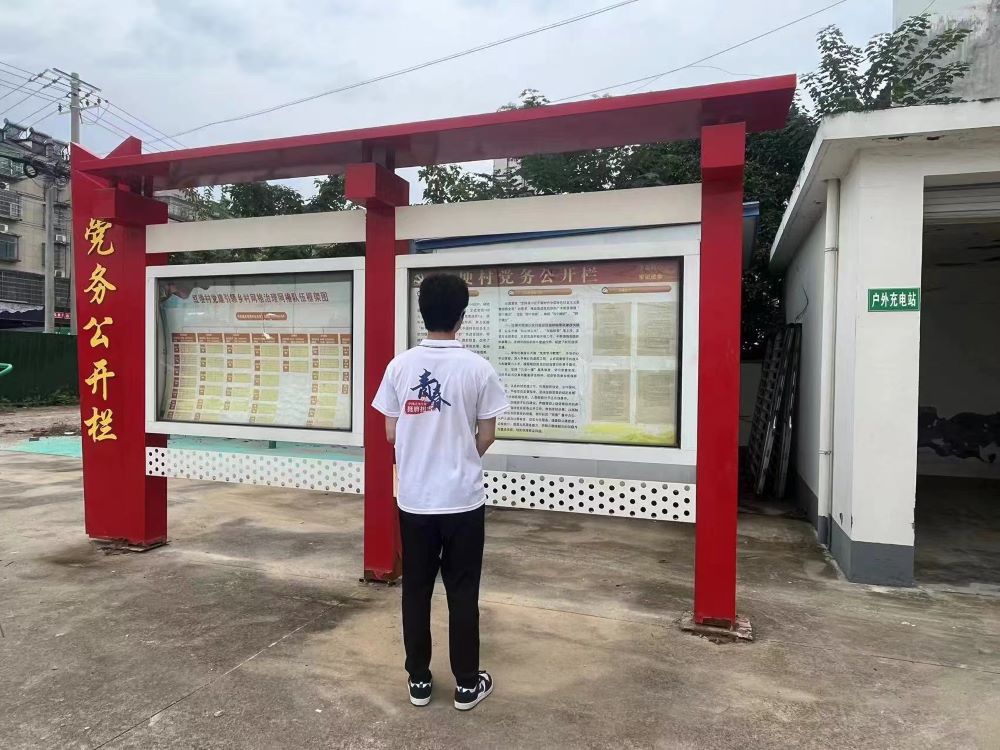 圖為實(shí)踐成員參觀社區(qū)社會組織孵化園黨務(wù)公開欄
