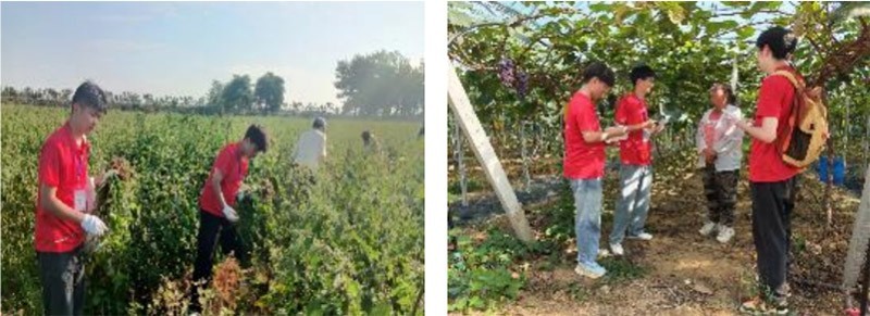 圖為實踐隊隊員田間勞作及對葡萄園園主采訪留影 實踐隊隊員 許曉宇 供圖