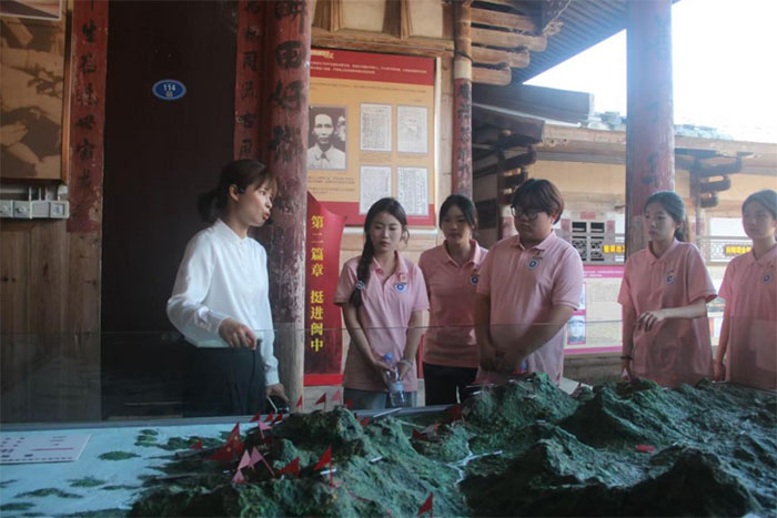 隊員們駐足聽講解員介紹,這是當年紅軍紅七軍團奉命組成北上抗日先遣隊