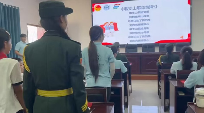 當逐句學唱完成,師生并肩站上“舞臺”(教室空地),開啟合唱!冻礁杞o黨聽》中,老師的領唱與孩子們的和聲交融,傳遞對黨的感恩;《強軍戰(zhàn)歌》里,師生共同用激昂旋律致敬軍人;《我和我的祖國》的合唱,更是讓愛國情在校園彌漫——陽光灑在孩子們的紅領巾上,映出他們認真的臉龐。 這場合唱,也讓支教團成員深受觸動,“孩子們的真誠,讓我們更懂紅歌傳承的意義”。