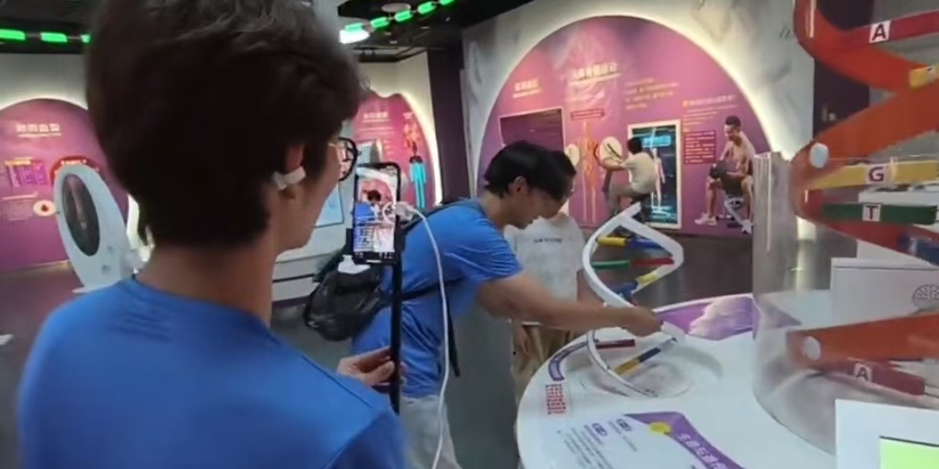 在阜陽科技館內(nèi),團(tuán)隊(duì)成員化身科普體驗(yàn)官與傳播者。做為體驗(yàn)官,團(tuán)隊(duì)在講解員的引導(dǎo)下,通過參與精彩紛呈的科學(xué)實(shí)驗(yàn)、觀察妙趣橫生的科學(xué)現(xiàn)象,深切感受科技的獨(dú)特魅力與對人類生活的  深遠(yuǎn)影響。做為傳播者,團(tuán)隊(duì)成員借助直播鏡頭,實(shí)時(shí)將科技館內(nèi)的科普盛宴傳遞給線上觀眾,為更多人宣講科技知識。在與科技館工作人員的深入交流中,團(tuán)隊(duì)敏銳捕捉到群眾科技獲得感與探索欲望的顯著提升,深刻認(rèn)識到公眾科學(xué)素養(yǎng)的提升是科技創(chuàng)新的基石,而科普工作正是連接科技與大眾的橋梁,唯有不斷夯實(shí)這座橋梁,才能激發(fā)全社會的創(chuàng)新活力,推動科技強(qiáng)國建設(shè)。