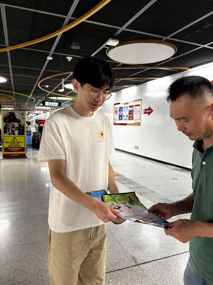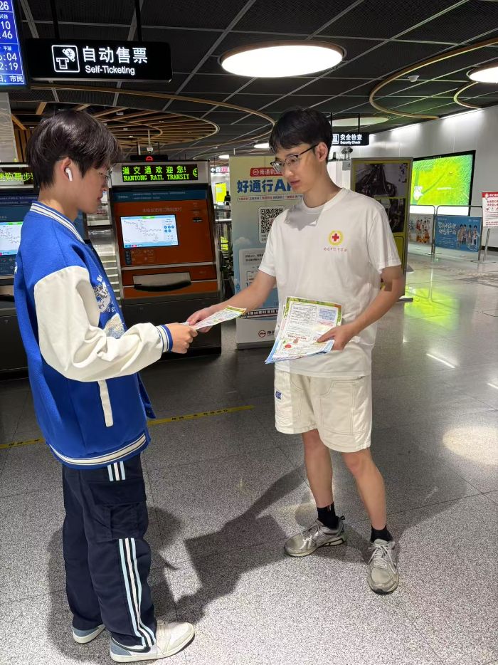 7月16日,南通大學(xué)地鐵站格外熱鬧。南通大學(xué)信息科學(xué)技術(shù)學(xué)院紅十字會(huì)“博愛青春”志愿隊(duì)開展了發(fā)放關(guān)愛未成年人心理健康宣傳冊(cè)活動(dòng),呼吁民眾從自我做起,攜手關(guān)注未成年人心理健康問題。