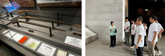 步入莊嚴(yán)肅穆的紀(jì)念館,歷史的厚重感撲面而來。在講解員的引領(lǐng)下,服務(wù)隊(duì)成員依次參觀了“抗日烽火燃魯南”“鐵道飛虎出奇兵”“紅色基因永傳承”等主題展區(qū)。展區(qū)內(nèi)陳列的步槍、鐵軌零件、歷史照片等實(shí)物,配合詳實(shí)的文字說明,展現(xiàn)鐵道游擊隊(duì)的發(fā)展歷程,為隊(duì)員們們搭建起直觀了解魯南地區(qū)抗日歷史的平臺,夯實(shí)歷史學(xué)習(xí)的實(shí)物基礎(chǔ)。