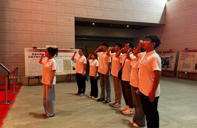 在結(jié)束參觀后,服務(wù)隊(duì)舉行了一場重溫入黨宣誓儀式。全體隊(duì)員整齊列隊(duì),面向黨旗,神情肅穆。領(lǐng)誓人聲音洪亮,鏗鏘有力地領(lǐng)讀誓詞,隊(duì)員們緊握右拳,莊嚴(yán)宣誓。誓言在紀(jì)念園上空回蕩,仿佛與先烈們的英魂產(chǎn)生了跨越時空的共鳴,激勵著隊(duì)員們不忘初心,牢記使命,在新時代的征程中奮勇前行。