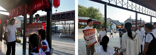 從鐵道游擊隊(duì)紀(jì)念館離開后,服務(wù)隊(duì)深刻感受到了鐵道游擊隊(duì)的精神內(nèi)涵,自發(fā)組織起一場鐵道游擊隊(duì)精神宣講,為來往的路人講解鐵道游擊隊(duì)精神。從他們?nèi)绾卧谄D苦的條件下,憑借著機(jī)智和勇敢,在鐵道線上與敵人展開殊死搏斗,到他們?nèi)绾吻擅畹乩玫匦魏蛿橙说娜觞c(diǎn),一次次地截獲敵人的物資,為抗日根據(jù)地提供有力的支持。路人聽得全神貫注,被鐵道游擊隊(duì)“赤誠報國、不怕犧牲、機(jī)智靈活、勇于亮劍”的精神深深打動。