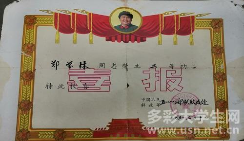 圖為老兵鄭學(xué)林的立功獎(jiǎng)狀