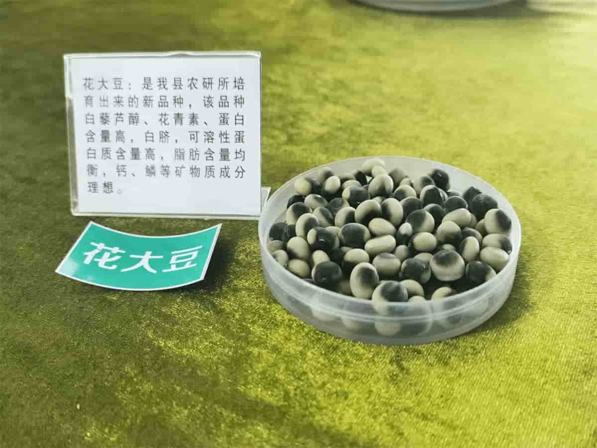 圖為永聯(lián)鎮(zhèn)的黑龍江嘉禾盛種業(yè)有限公司展出的花大豆。 杜澤林 攝