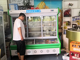 圖為實(shí)踐隊(duì)員走進(jìn)街頭餐飲小店,近距離觀察其食品冷凍儲(chǔ)存柜,了解到該餐飲店鋪衛(wèi)生程度標(biāo)準(zhǔn)化較高,且小微餐飲企業(yè)的轉(zhuǎn)型升級(jí)也將面臨其配備設(shè)施的改革迭代。