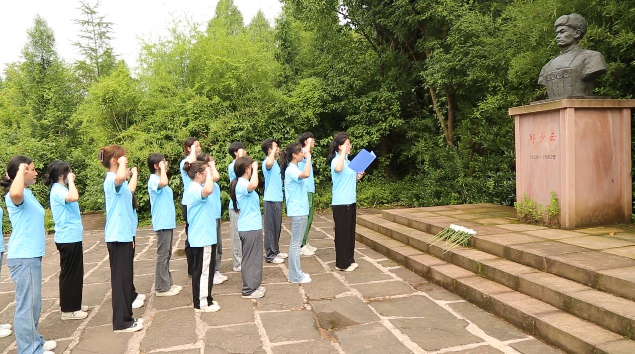 參觀結(jié)束后,學(xué)子們在故居前肅立,手執(zhí)鮮艷的黨旗,共同高唱《我和我的祖國》。歌聲嘹亮、情感真摯,傳達(dá)出學(xué)子們對祖國的深深熱愛和對英雄的崇高敬意。隨后經(jīng)管學(xué)子在邱少云同志的雕像前莊嚴(yán)宣誓。他們的誓言鏗鏘有力、擲地有聲,每一個字、每一句話都充滿了對黨和國家的忠誠與熱愛。宣誓儀式結(jié)束后,學(xué)子們紛紛向雕像鞠躬致敬,表達(dá)對英雄的崇高敬意和無限緬懷。