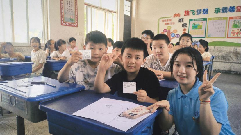 “那外國人能搞的,難道中國人不能搞?”擲地有聲的話語重現(xiàn)在學(xué)校的教室里。原來,是實踐隊員在講述偉大科學(xué)家錢學(xué)森的故事。“同學(xué)們,你們折過紙飛機嘛?”團隊成員帶著兩個紙飛機,走進課堂,用8個故事串起了他愛國奉獻的一生。從孩童時期對折飛機的憧憬,到成為航空報國的領(lǐng)軍人物;從異國他鄉(xiāng)的求學(xué)艱辛,到面對嘲諷時的堅定捍衛(wèi)民族尊嚴(yán);從學(xué)成歸國的毅然決然,到為中國航天事業(yè)筑就輝煌,他用自己的實際行動詮釋了“科學(xué)無國界但科學(xué)家有祖國”的深刻內(nèi)涵。“他心懷大志,熱愛祖國,將小我融入大我,為中國航天事業(yè)的發(fā)展貢獻了巨大力量,也為祖國培育了一代又一代的科技人才。但他卻說:‘一切成就歸于黨、歸于集體,我個人只是恰逢其時做了自己應(yīng)做的工作,我的事業(yè)在中國,我的成就在中國,我的歸宿在中國。’”聽到這里,同學(xué)們熱淚盈眶,為錢爺爺不平凡的一生所動容,他們揮動起手中的國旗,紛紛表示:“我是一名中國人,我感到十分驕傲與自豪”“每一位科學(xué)家都值得我們致敬,我也要傳承他們身上的科學(xué)家精神”“我要好好學(xué)習(xí),承將軍遺志,成為對社會的有用之材,回報家鄉(xiāng)、回報社會。”實踐隊員不僅進行了科學(xué)家精神宣講,還開展了生動有趣、融入創(chuàng)新性元素的科普實驗,讓孩子們在實踐中充分認(rèn)識世界,在動手動腦中體驗科學(xué)的魅力,形成講科學(xué)、愛科學(xué)、學(xué)科學(xué)、用科學(xué)的良好氛圍。在互話心靈的過程中,一位小學(xué)生寫下了這樣的幾行字“今天玩了很多小游戲,每一件都讓我很開心,長大以后,我也要當(dāng)一名科學(xué)家,去探索新世界。”一筆一畫,工工整整,用心澆灌,靜待花開。