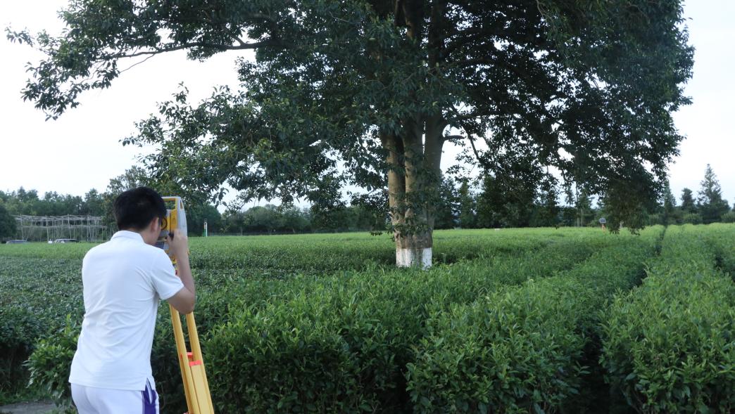 圖為實踐團志愿者們在“三棵樹”茶園實地測量