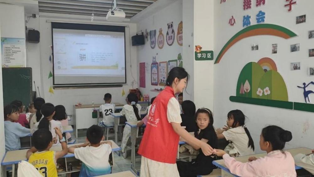 7月18日,淮北師范大學暑期“三下鄉(xiāng)”“志愿青春助振興,西江苗寨繪新篇”社會實踐前往雷山縣觀音閣社區(qū)兒童之家,為學生們開展了一場別開生面的“推廣普通話”支教活動。(通訊員:蘇永宏)