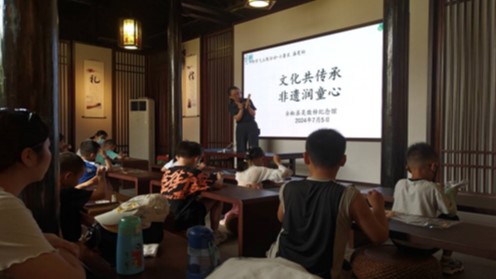 弦歌不輟,薪火相傳。次日,團隊成員參與由全椒縣吳敬梓紀念館所舉辦的“文化共傳承,非遺潤童心”活動。授課老師和小朋友們非常歡迎實踐隊員的到來。團隊成員與小朋友們共同體驗傳統(tǒng)的私塾上課方式,沉浸式的私塾上課方式讓小朋友們仿佛置身于中華文明的搖籃中,令他們切身體會到了傳統(tǒng)文化的魅力。此外,團隊成員還組織了專題講座和研討會,運用通俗易懂的語言,給小朋友們介紹了吳敬梓的生平事跡。同學們紛紛表示受益匪淺。