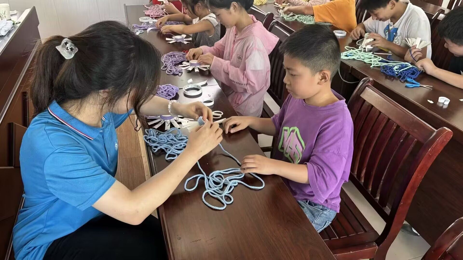 在團隊成員的指導(dǎo)下,學(xué)生們還利用各種材料制作出精美的手工藝品,有單獨完成作品的,也有幾個人一起合作的完成一件作品的。開展手工制作活動,不僅鍛煉了學(xué)生們的動手操作能力和交流能力,也培養(yǎng)了他們的審美觀和藝術(shù)感。在這一過程中,孩子們的想象力和創(chuàng)新思維都得到了極大的發(fā)揮。