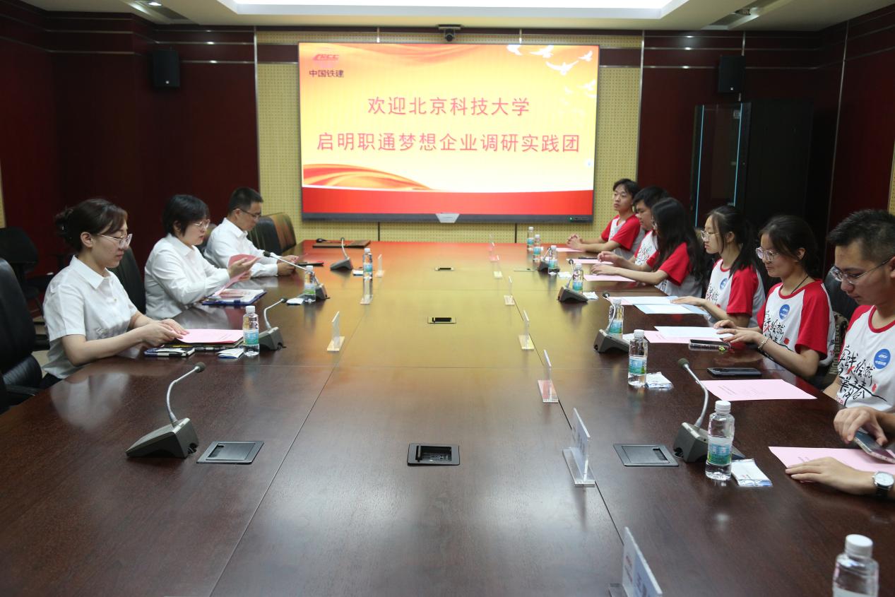 (圖為實踐團(tuán)成員與中鐵國際人力資源部幾位經(jīng)理的訪談  王巍然供圖)