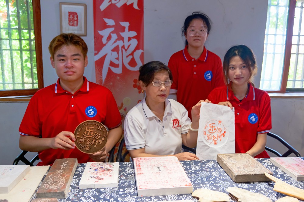 在了解五埠村紅色文化的同時(shí),隊(duì)員們還積極投身于非遺文化的體驗(yàn)之中。通過(guò)與岱岳傳拓傳承人的交流,隊(duì)員們對(duì)岱岳傳拓技藝進(jìn)行了學(xué)習(xí),在傳承人的悉心指導(dǎo)和耐心鼓勵(lì)下,他們逐漸掌握了要領(lǐng),拓印出了雖略顯稚嫩但飽含心意的作品。在學(xué)習(xí)和制作過(guò)程中,每個(gè)步驟都傾注著隊(duì)員們的專注與努力。此外,志愿者們還向前來(lái)參觀的游客展示和介紹非遺作品,并邀請(qǐng)游客親自參與體驗(yàn)制作過(guò)程。游客們紛紛駐足,被這些獨(dú)特的傳統(tǒng)文化所吸引,現(xiàn)場(chǎng)歡聲笑語(yǔ)不斷,氣氛熱烈而溫馨。