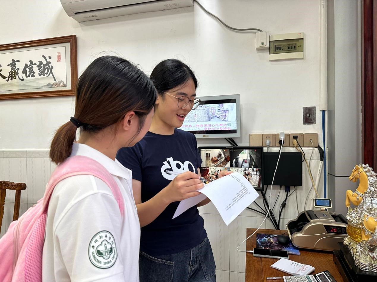 下午,為深入了解潭下鎮(zhèn)居民對月光糕認識和需求,實踐隊成員走訪當?shù)卮迓,前往潭江中學(xué)、商戶和居民進行實地調(diào)研和考察,通過派發(fā)調(diào)查問卷和采訪的形式,在與學(xué)生、村民的談話中,我們對月光糕也有了更進一步的了解。