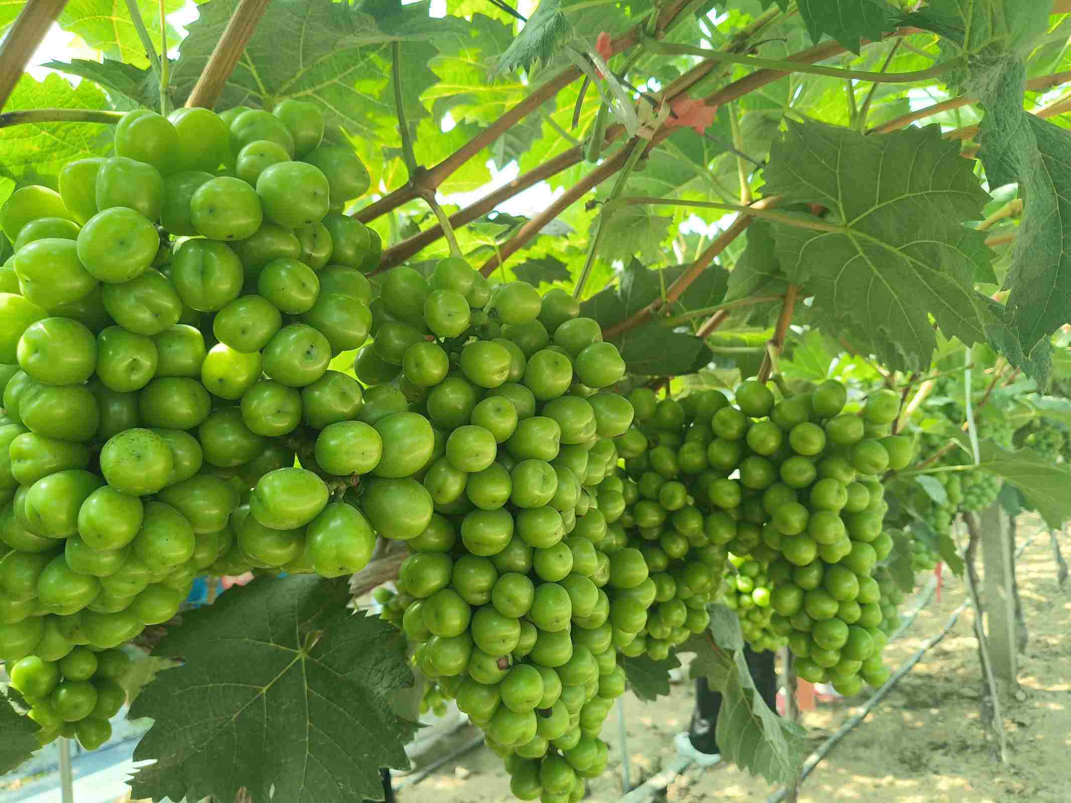 調(diào)研團(tuán)的第一站走進(jìn)當(dāng)?shù)氐钠咸逊N植園。踏入綠意盎然的葡萄園里,一排排整齊的葡萄藤架上,成熟的葡萄、陽光玫瑰等優(yōu)質(zhì)品種果實(shí)飽滿,在陽光下泛著晶瑩光澤。據(jù)調(diào)研團(tuán)的采訪反饋,同大鎮(zhèn)農(nóng)戶參與鎮(zhèn)政府組織的智能設(shè)備操作培訓(xùn)后,生產(chǎn)效率大幅提升,葡萄精度與產(chǎn)量同步提高。