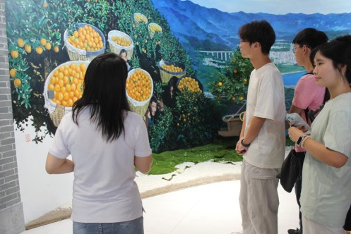 在屈姑集團(tuán)柑橘溯源文化館,講解人向?qū)W生們?cè)敿?xì)介紹了當(dāng)?shù)鬲?dú)特的四季鮮橙供應(yīng)體系:“我們培育出了春有倫晚、夏有夏橙、秋有秋橙、冬有長(zhǎng)紅紐荷爾的品種結(jié)構(gòu),實(shí)現(xiàn)了一年365天都有新鮮臍橙上市。”
