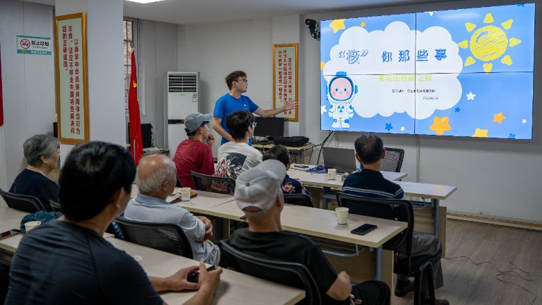 圖2 志愿者向社區(qū)居民宣講“兩彈一星”精神