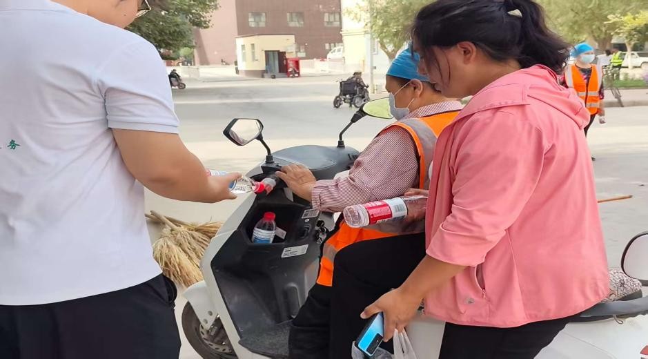 清掃工作結(jié)束后,實(shí)踐團(tuán)向圖妮薩古經(jīng)理及參與活動(dòng)的環(huán)衛(wèi)工人贈(zèng)送了礦泉水、雪糕等物資,表達(dá)對(duì)基層環(huán)保工作者的敬意與感謝。圖妮薩古經(jīng)理對(duì)實(shí)踐團(tuán)的辛勤付出給予肯定,認(rèn)為此次活動(dòng)既響應(yīng)了“共建共治共享”的社會(huì)治理要求,也為社區(qū)環(huán)境提升注入了青春動(dòng)力,對(duì)推動(dòng)“宜居宜業(yè)和美社區(qū)”建設(shè)具有積極意義。