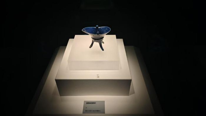 圖為徽州歷史博物館的“鎮(zhèn)館之寶”──元代藍釉爵杯