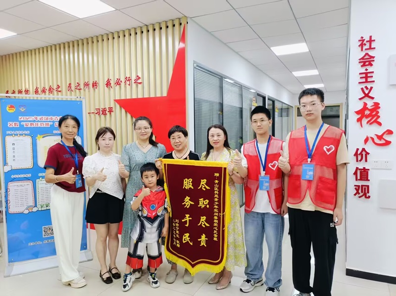 在暑期托管期間,科苑社區(qū)收到家長(zhǎng)贈(zèng)送的錦旗。“盡職盡責(zé),服務(wù)于民”這既是對(duì)社區(qū)工作的肯定,也是對(duì)志愿者們的莫大鼓勵(lì),一面錦旗,是家長(zhǎng)沉甸甸的認(rèn)可;一份堅(jiān)守,是志愿者們不變的熱忱。