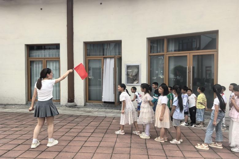 哨音一落,石板廣場像剛剛熄火的灶臺,還留著燙腳的溫度。陽光從屋檐傾瀉下來,把隊(duì)伍切成明暗兩截——亮處汗光閃閃,暗處衣色發(fā)深。回到教室的孩子們,有的汗水在領(lǐng)口洇出深色的一圈,卻抬頭沖老師展示獲得的小紅花;有的一邊喘氣一邊笑,嗓子里面還帶著剛剛歡呼后的沙啞。一堂課把盛夏的熱、童真的亮,全混進(jìn)他們濕漉漉的衣服里,帶回了教室。汗水浸透了正盛的暑熱,童真融化了午后的光影。