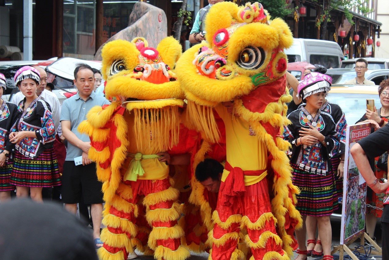 圖為長(zhǎng)桌宴吉祥舞獅表演  陳書(shū)雅 供圖