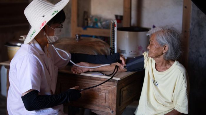 在義診途中,我們支起血壓儀,阿婆的手顫巍巍伸過來,指節(jié)上的裂口還沾著晨露打濕的草綠,量完血壓后,她非要抱起西瓜,熱情招待我們。那一刻忽然懂了,鄉(xiāng)村的溫度從不是冰冷的數(shù)字,是阿婆掌心的暖,是孩子眼里的真,是我們走進家門宣傳“防溺水六不”時,風把話語吹進禾苗里的溫柔。