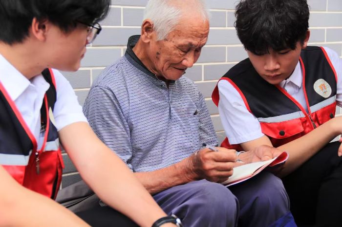 (圖為服務隊成員傾聽廖開華老人講述崢嶸歲月)