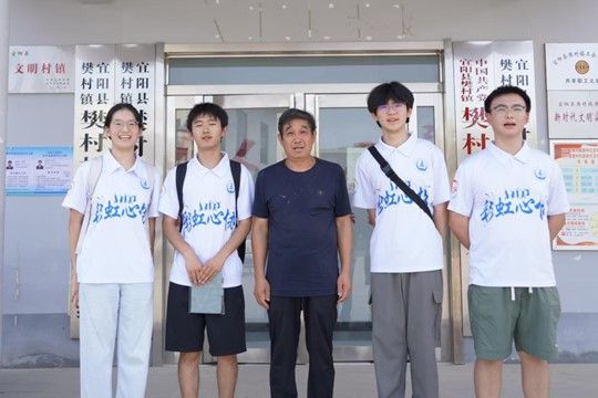 圖為社會實踐隊與村支書在樊村村委會前合影。秦夢茹供圖