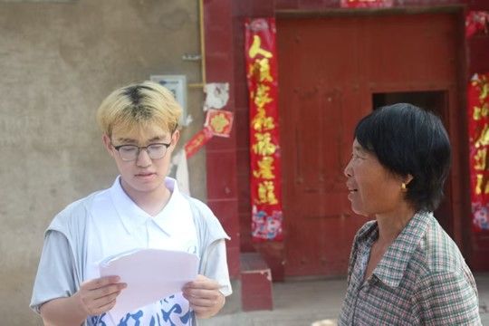 圖為志愿者在農(nóng)戶門前與老人交流。張璐供圖