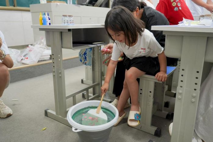 圖為參加活動(dòng)的小朋友正在進(jìn)行漆扇的制作。馬昭卿供圖